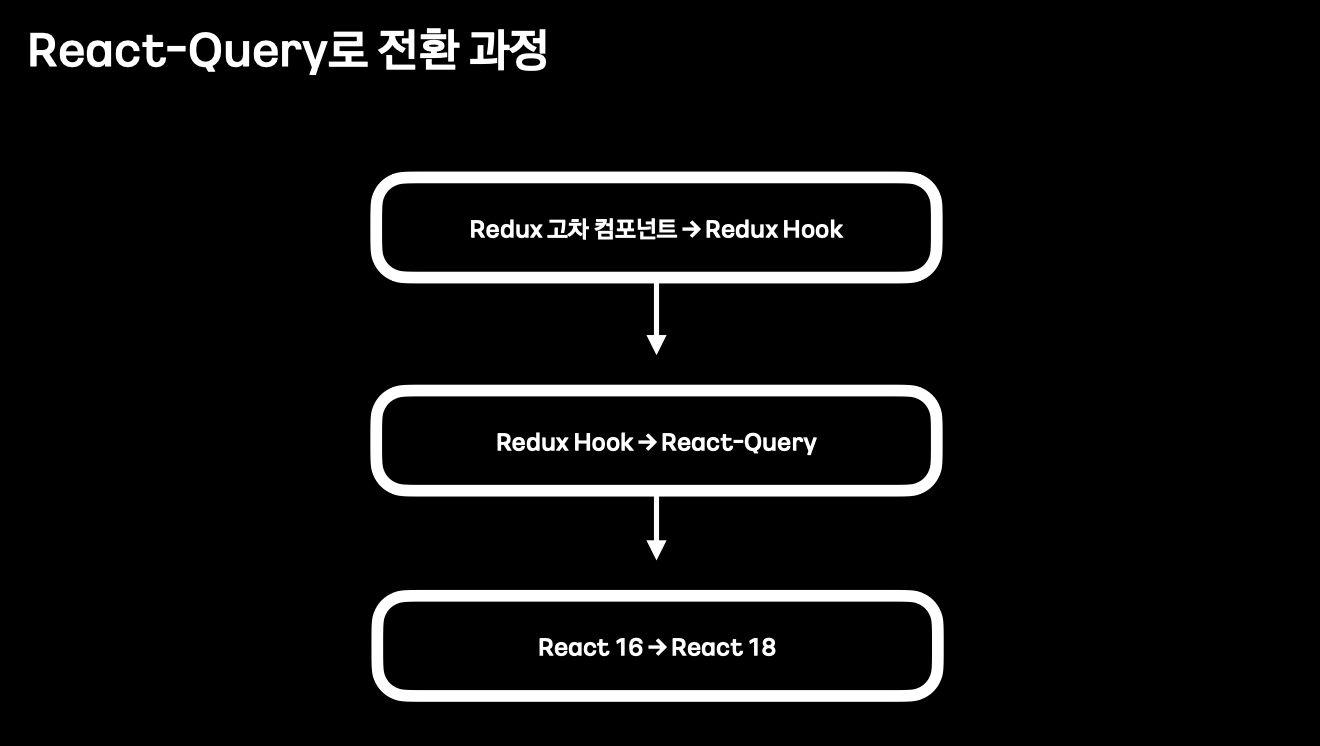 Redux에서 React-Query로 전환 과정을 정리하면 다음과 같습니다.