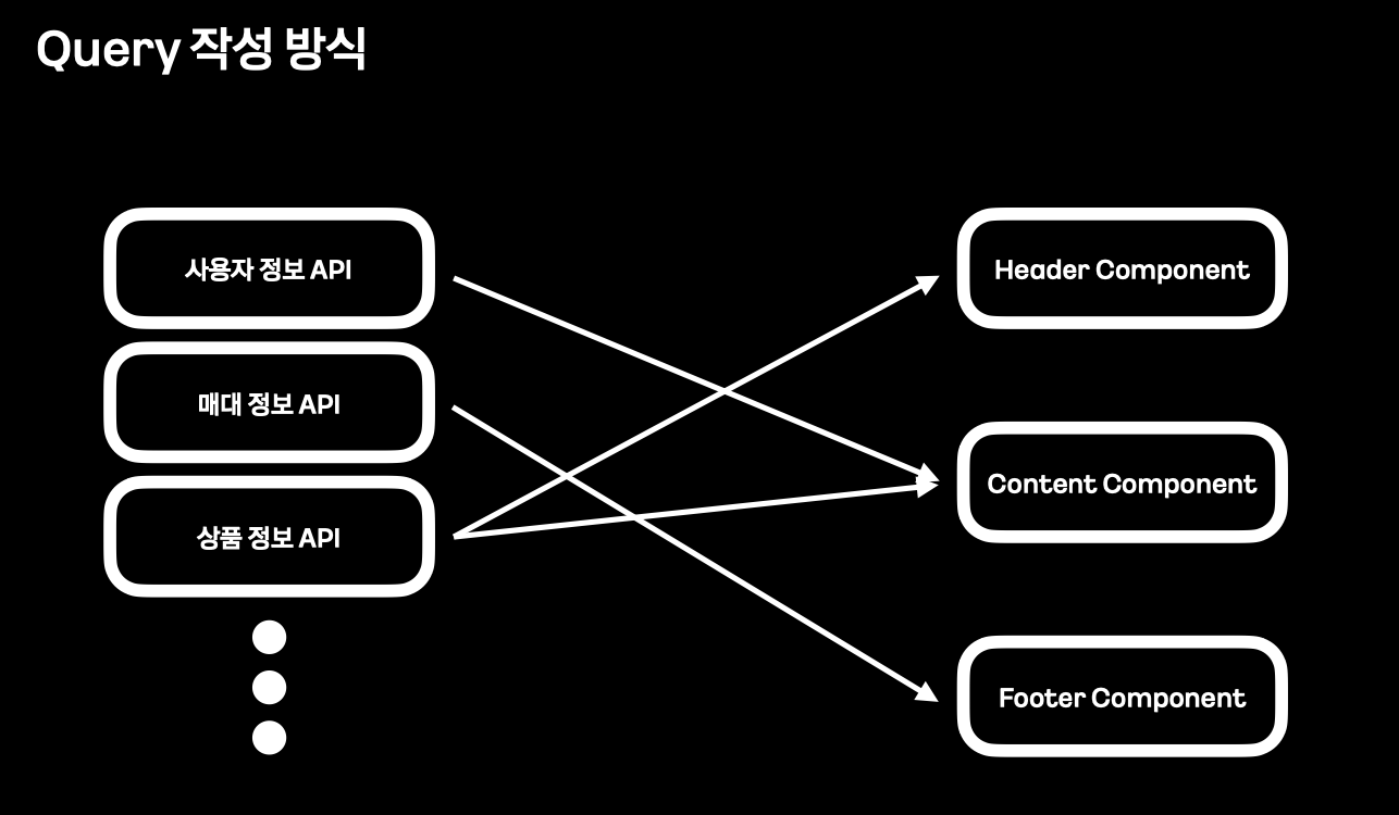 기존의 My 구독팀의 Query 작성 방식은 다음과 같이 각각의 API에서 필요한 컴포넌트를 호출하여 사용하는 방식을 사용했습니다.