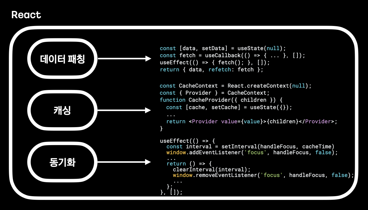 - Hook 기반을 제공하고 캐싱을 지원합니다.