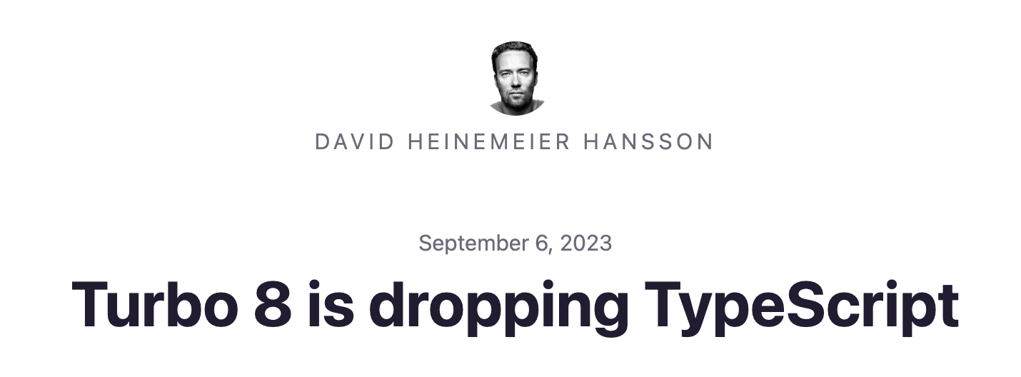 DHH(David Heinemeier Hansson) 본인이 밝힌 Turbo 8에서 TypeScript를 퇴출시킨 직접적인 이유는 아래와 같이 밝히고 있습니다.
