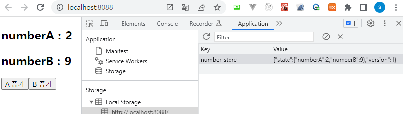 numberA: state.numberA + 1, // state를 이용하여 state 값 변경